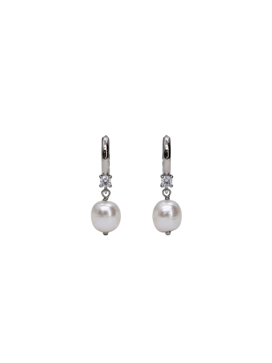 עגילי חישוק כסף בשילוב פנינה מייגן