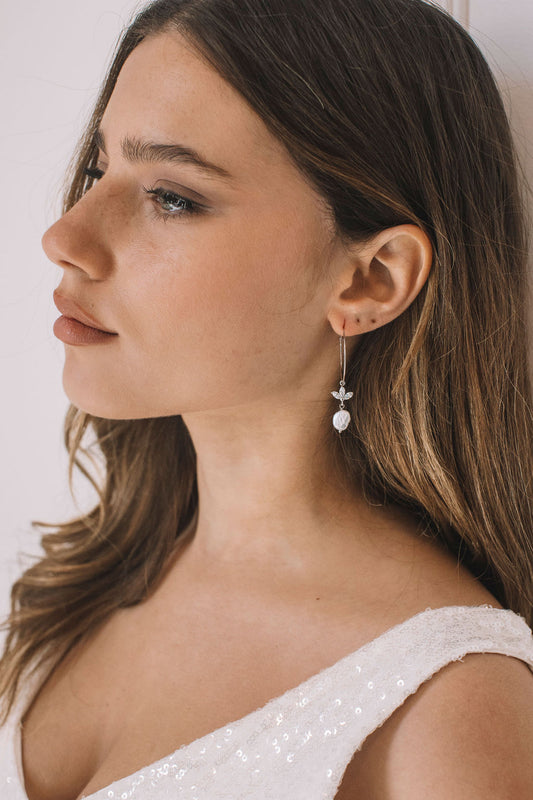 עגילי חישוק כסף בשילוב תליון פנינה ויקטוריה