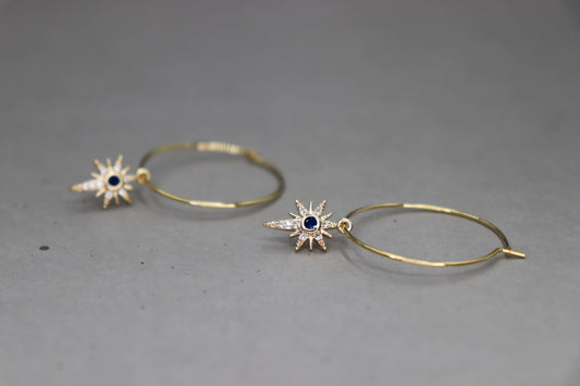 עגילי חישוק בשילוב תליון כוכב ג'ואן