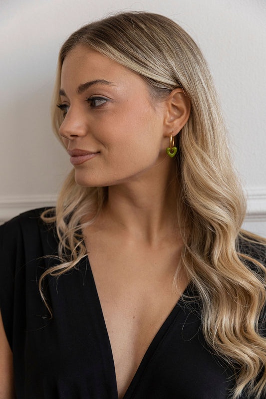 עגילי חישוק לב ירוק גאמי לאב