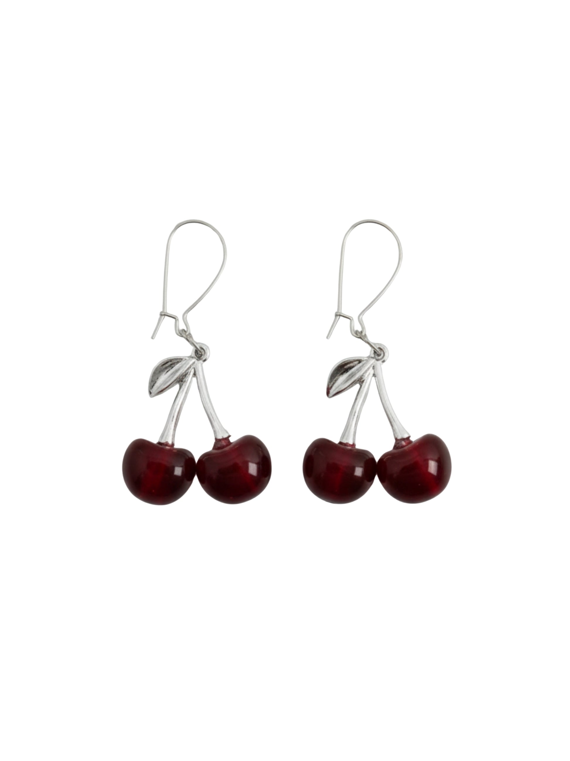 זוג עגילי דובדבן עשויים פליז מצופה רודיום.