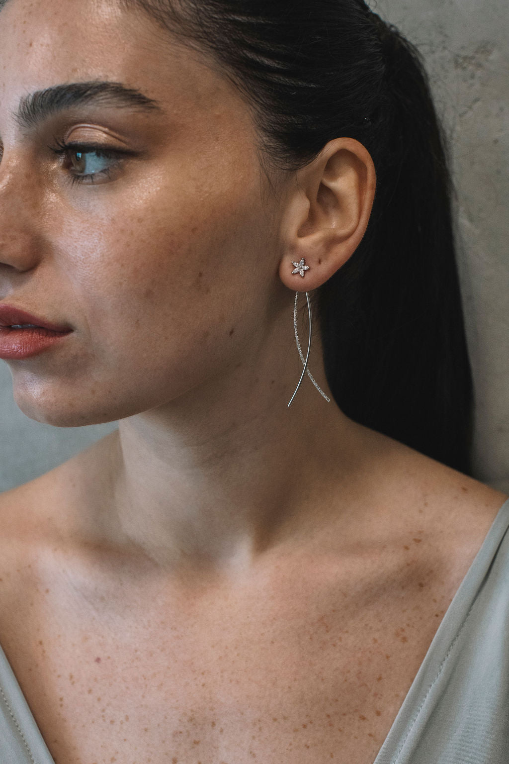 עגילי פרח כסף איב