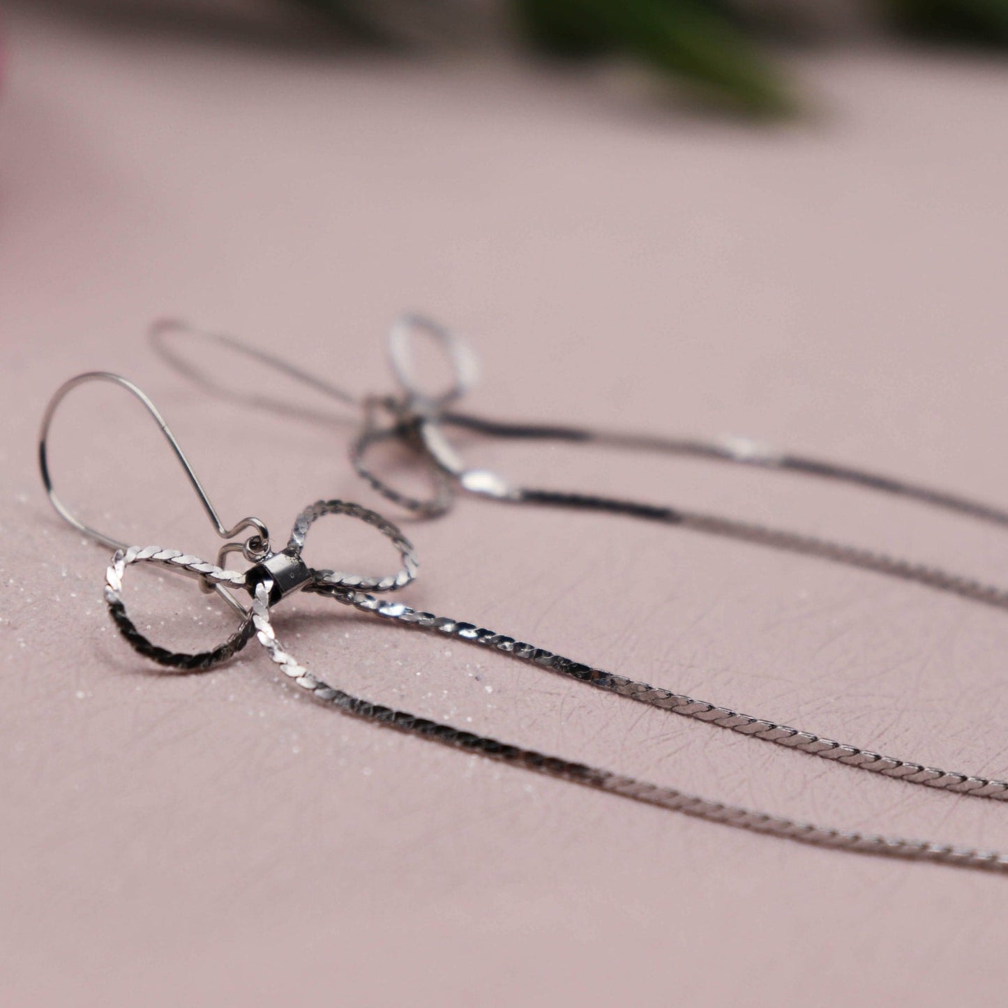 עגילי פפיון עשויים פליז מצופה רודיום.